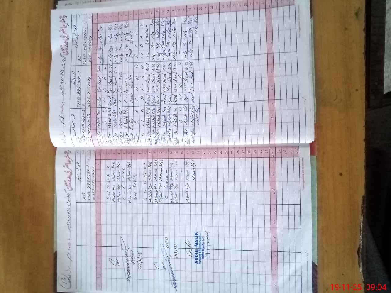 | CNIC | Full Name | Designation | R/C | Absence During Last Calender Month |