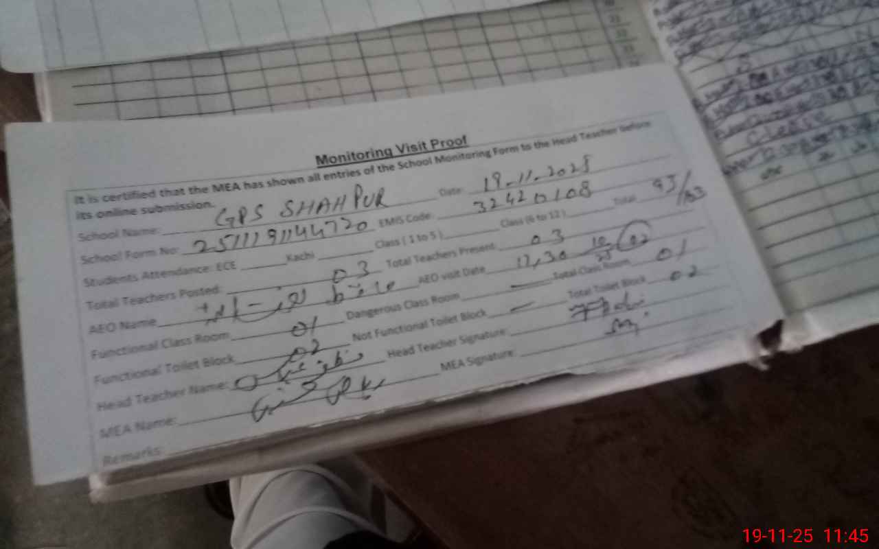 | EMIS Code: 32420108 | Name of School: GPS SHAH PUR | |||