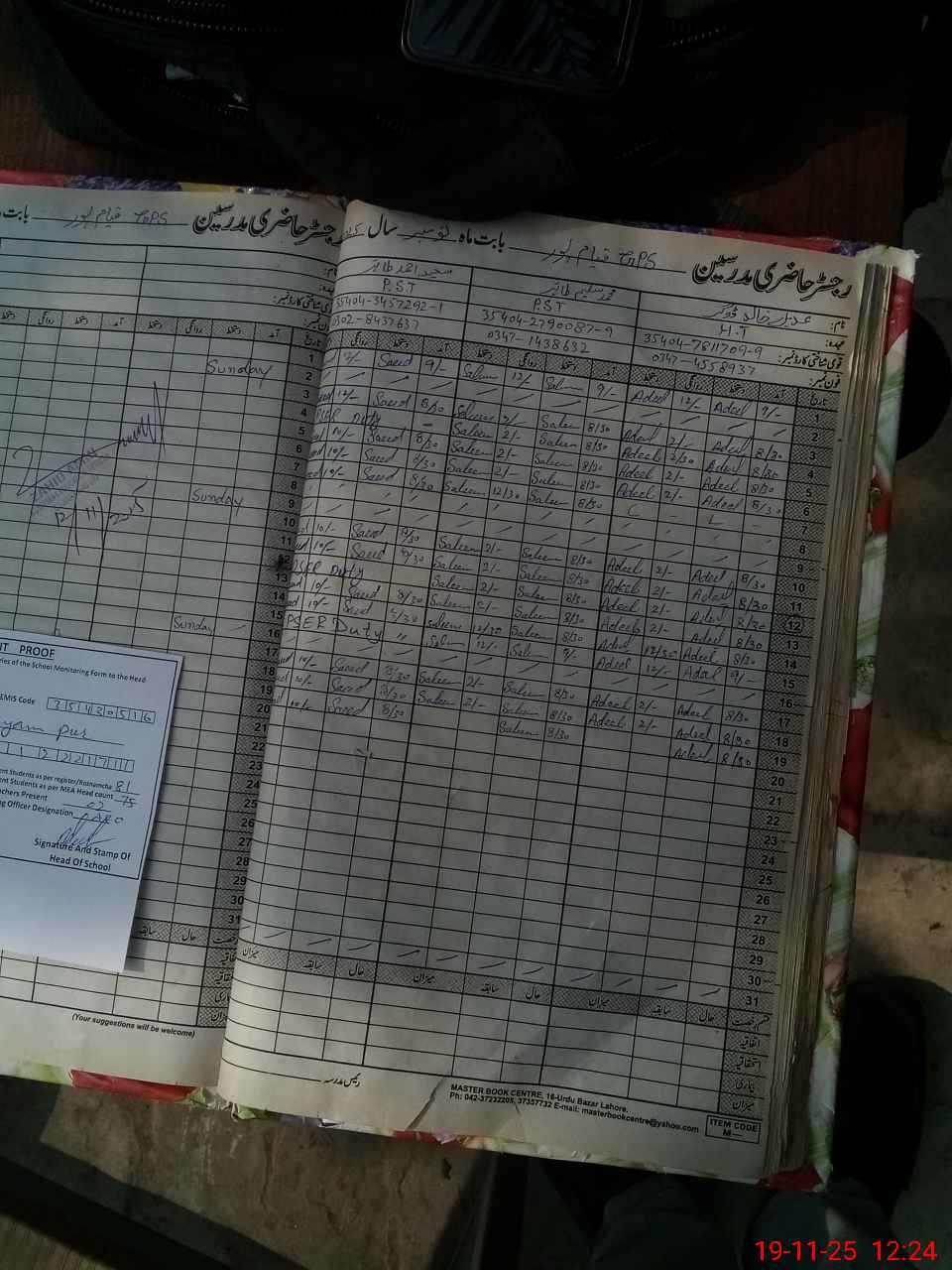 | Name: AD**** KH**** Designation: (School Headmaster's/Headmistress's) PST Phone/Cell Number: 03**** |