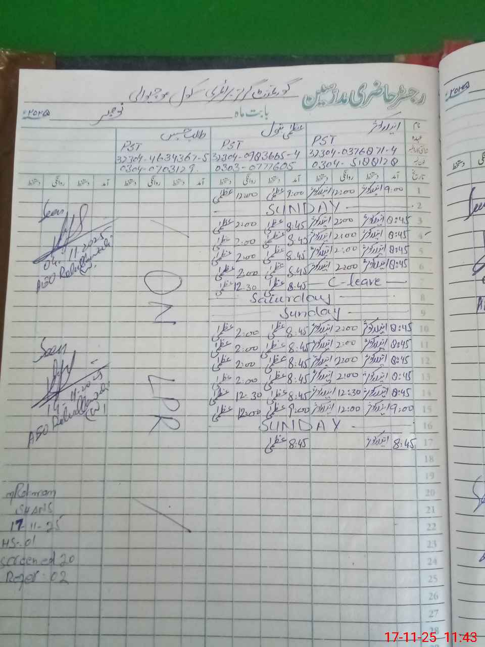 | CNIC | Full Name | Designation | R/C | Absence During Last Calender Month |