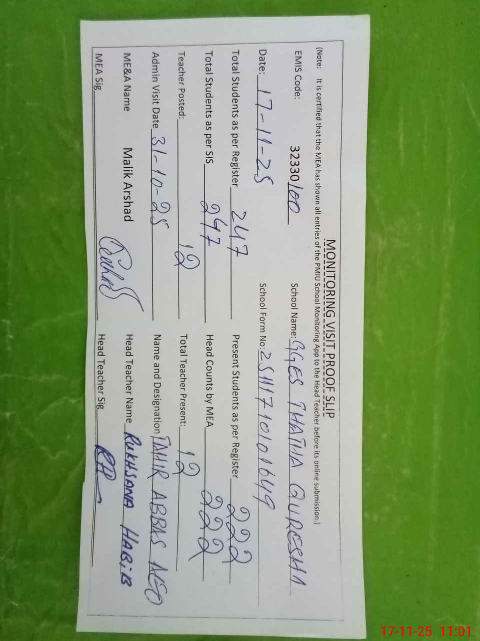| EMIS Code: 32330100 | Name of School: GGES THATHA QURESHI | |||