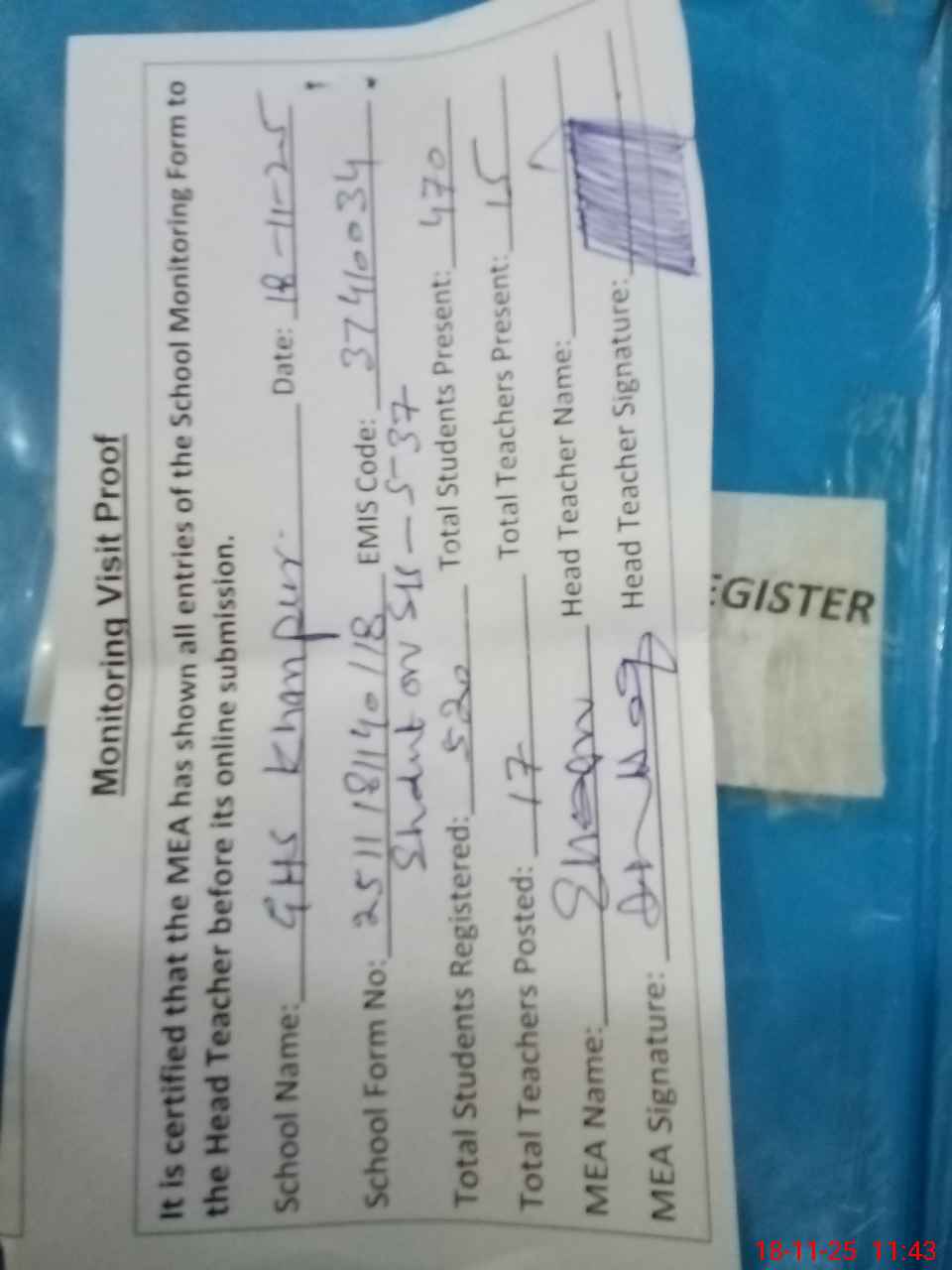 | EMIS Code: 37410034 | Name of School: GHS KHANPUR CHAKWAL | |||