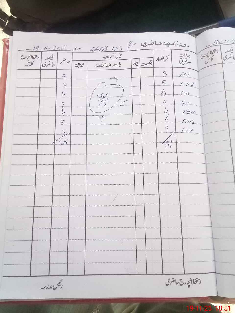 | No. of Students Present - Male | 2 | 0 | 1 | 5 | 2 | 1 | 2 | 5 | 18 | |||||||