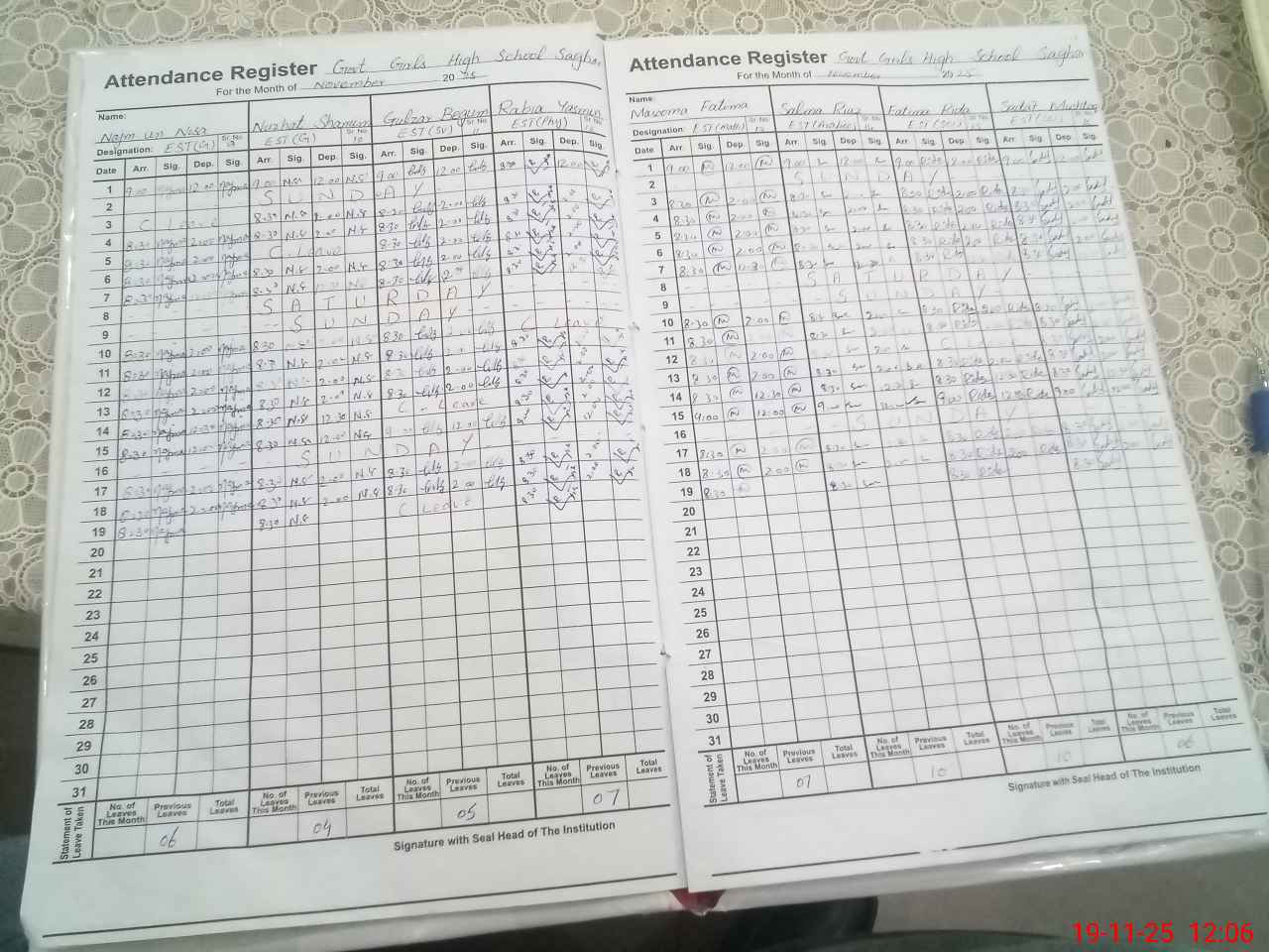 | CNIC | Full Name | Designation | R/C | Absence During Last Calender Month |