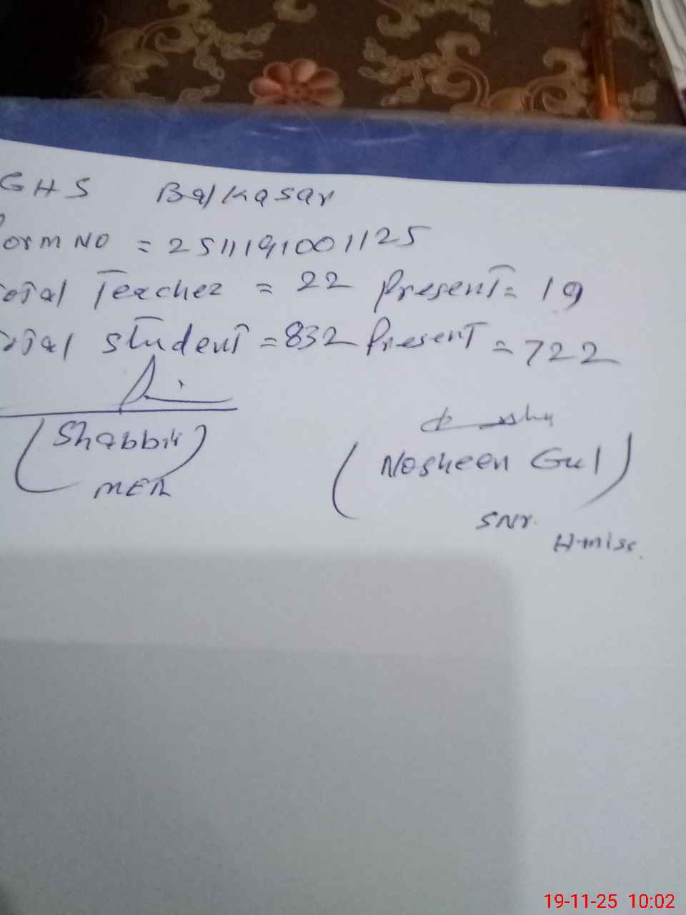 | Name: Sa**** Kh**** Designation: (School Headmaster's/Headmistress's) I C Headistress Phone/Cell Number: 03**** |