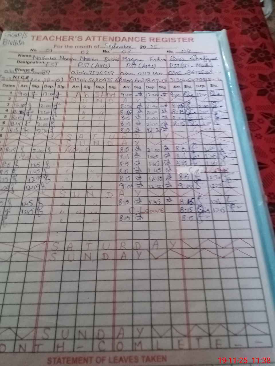 | Name: No**** No**** Designation: (School Headmaster's/Headmistress's) EST Phone/Cell Number: 03**** |