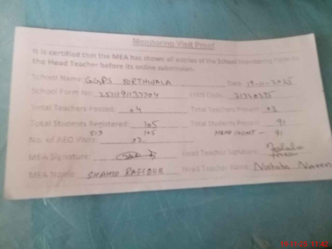| EMIS Code: 31340395 | Name of School: GGPS BIRTHWALA | |||