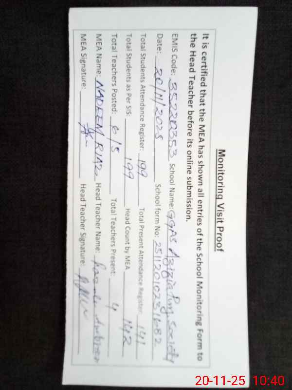| EMIS Code: 35220353 | Name of School: GGPS AZIZIA PUNJAB SOCIETY | |||