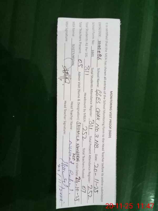 | EMIS Code: 38410086 | Name of School: GGES CHAK NO.3 NB | |||