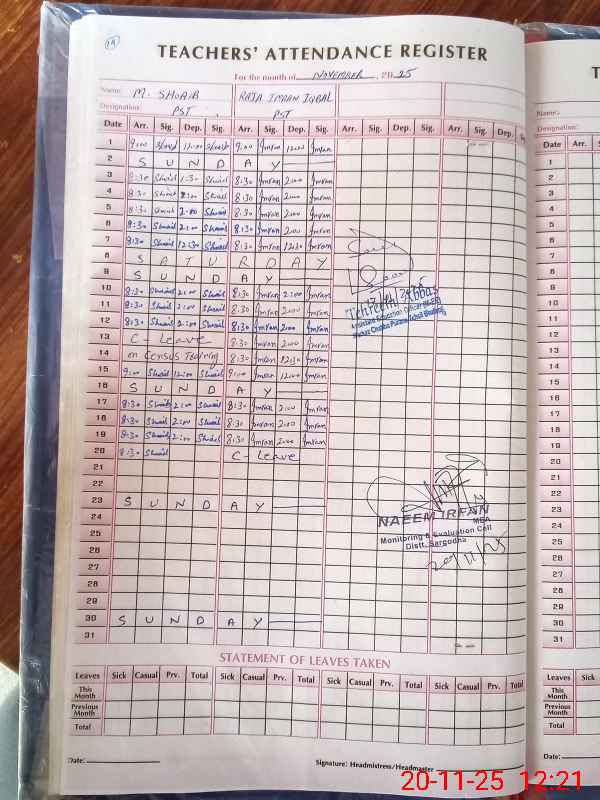 | Attendance Register | Head Teacher | MEA with School | Visit Proof |