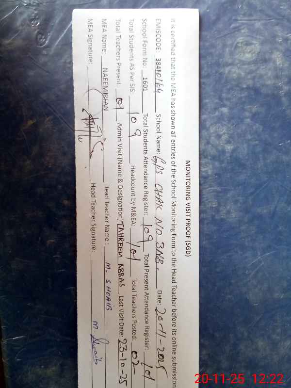 | EMIS Code: 38410164 | Name of School: GPS CHAK NO.3 NB | |||