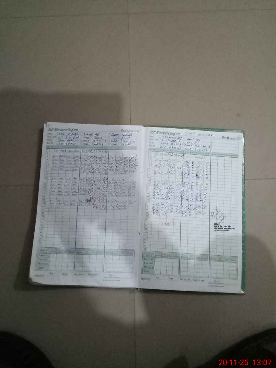 | CNIC | Full Name | Designation | R/C | Absence during last cal. month |
