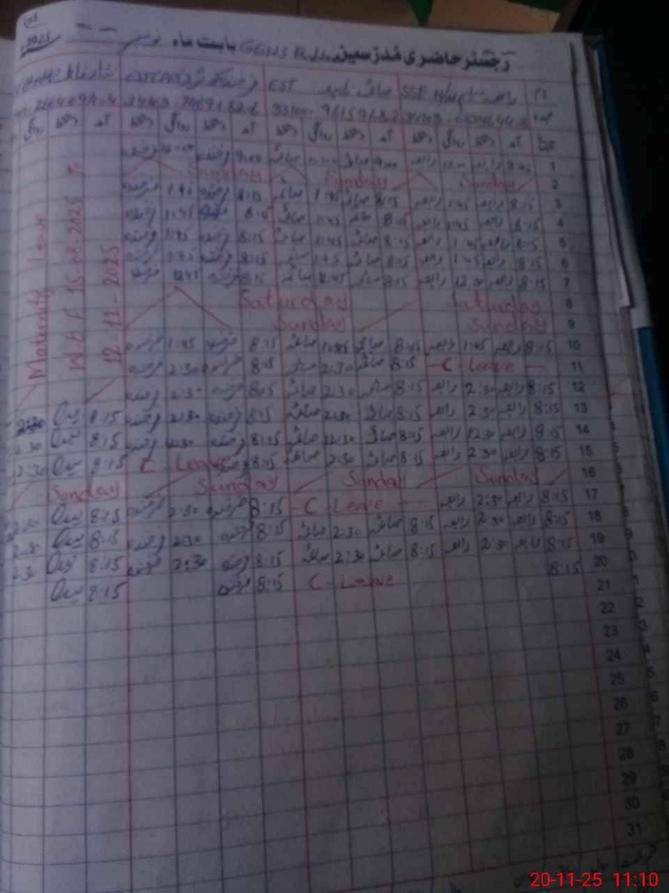 | Leave | Duty | Absent | Maternity | Medical | Ex- Pak |