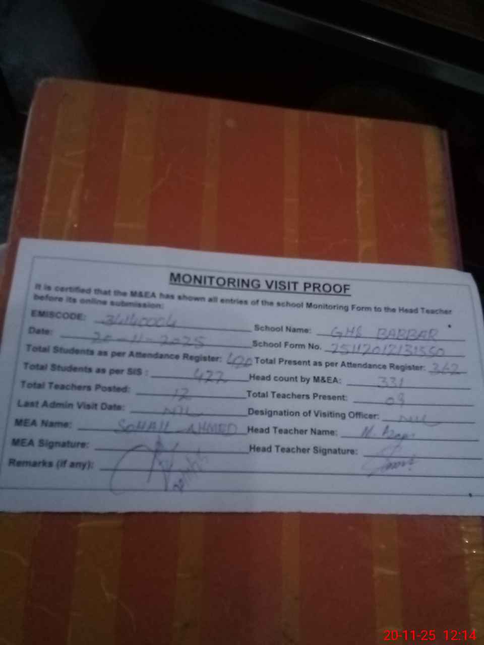 | EMIS Code: 34140004 | Name of School: GHS BABBAR | |||