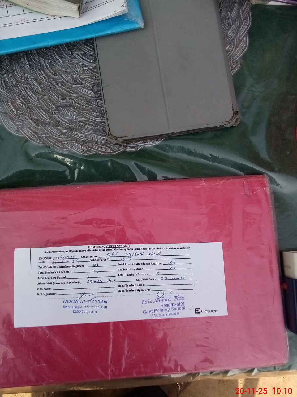 | EMIS Code: 38460229 | Name of School: GPS WAISAN WALA | |||