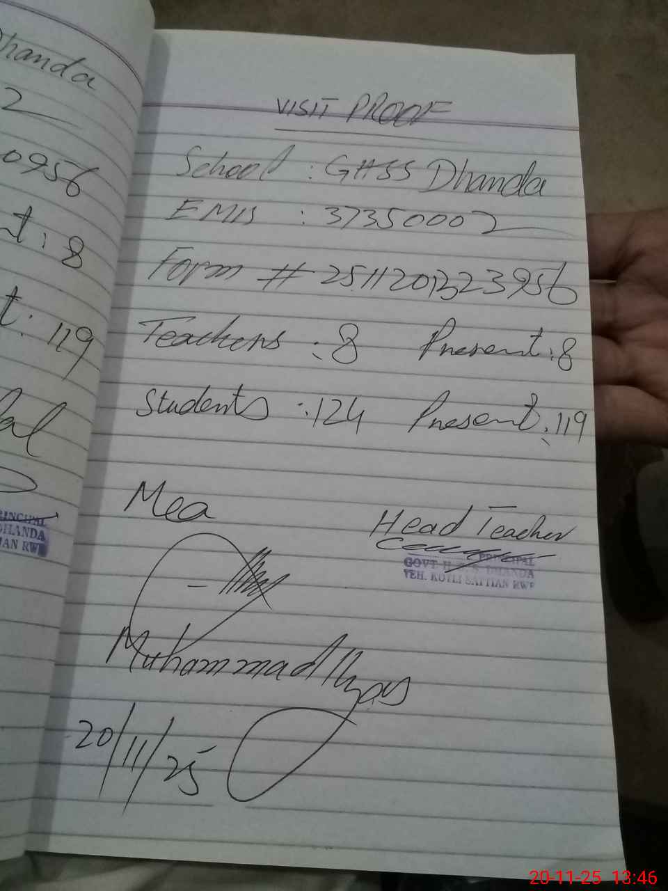 | EMIS Code: 37350002 | Name of School: GHSS DHANDA | |||