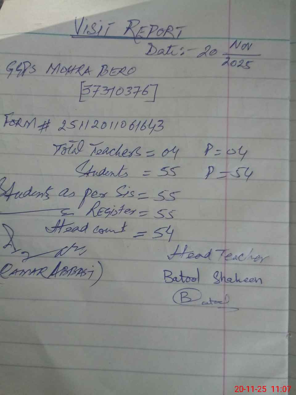 | EMIS Code: 37310376 | Name of School: GGPS MOHRA BERO | |||