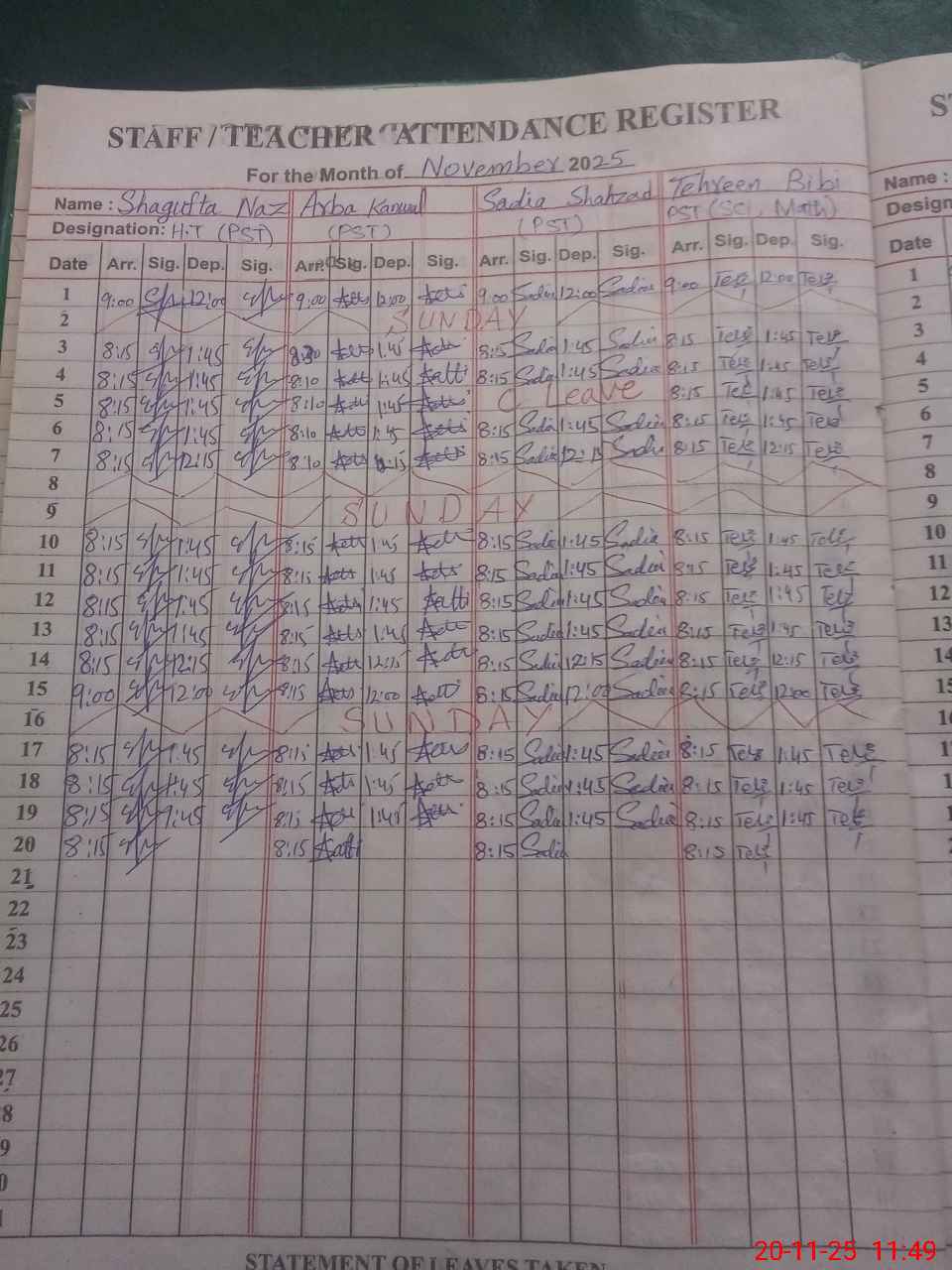| Name: SH**** NA**** Designation: (School Headmaster's/Headmistress's) PST Phone/Cell Number: 03**** |