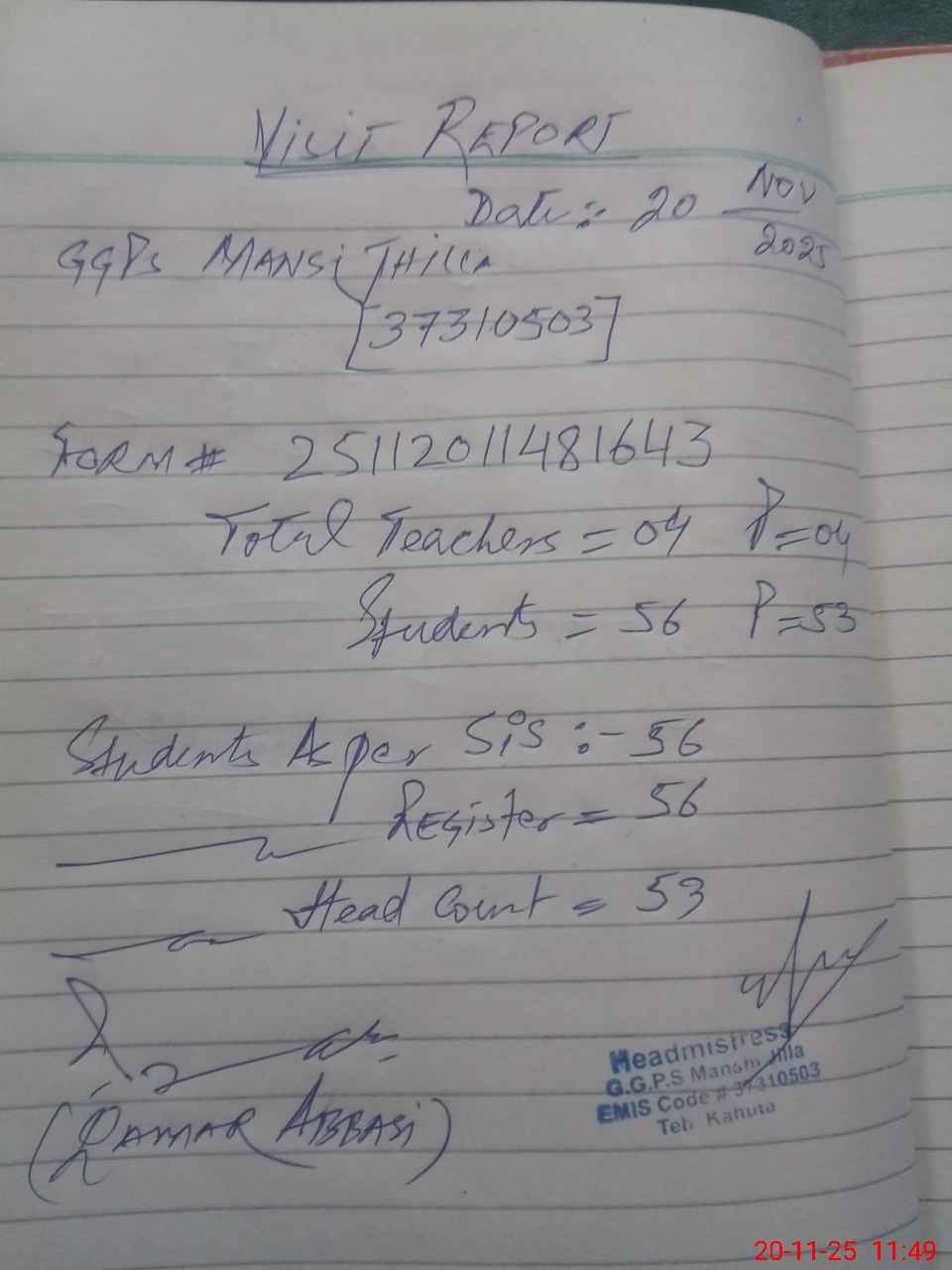 | EMIS Code: 37310503 | Name of School: GGPS MASI JILLA | |||