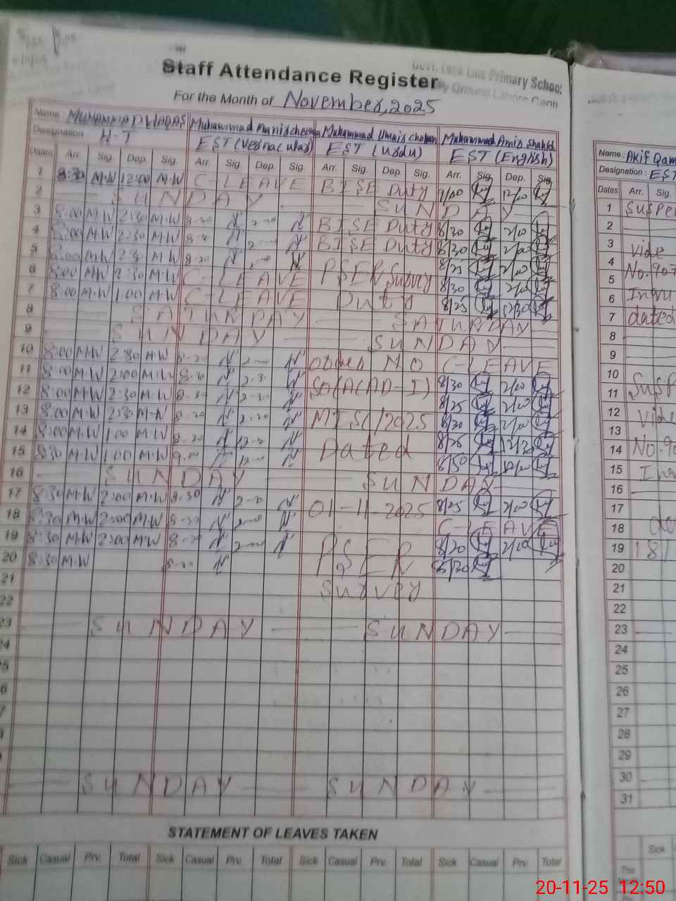 | Remarks (Use Separate Page if Required): Akif Qamar Chohan EST suspended vide BISE Letter No 88 CE P dated 17 April 2025 but physically available in school 35210384 | |||||