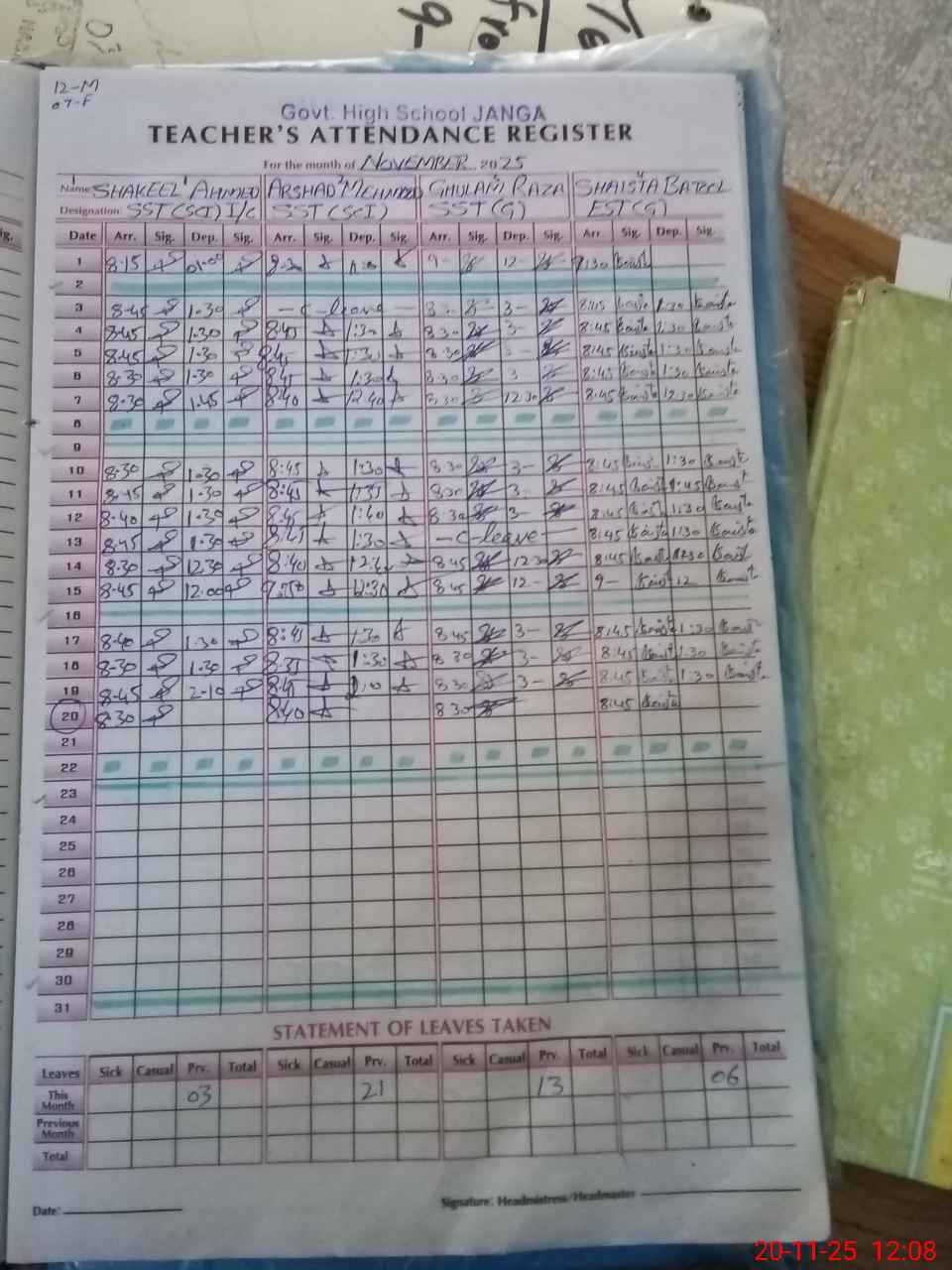| Name: Sh**** Ah**** Designation: (School Headmaster's/Headmistress's) I C HEADMASTER Phone/Cell Number: 03**** |