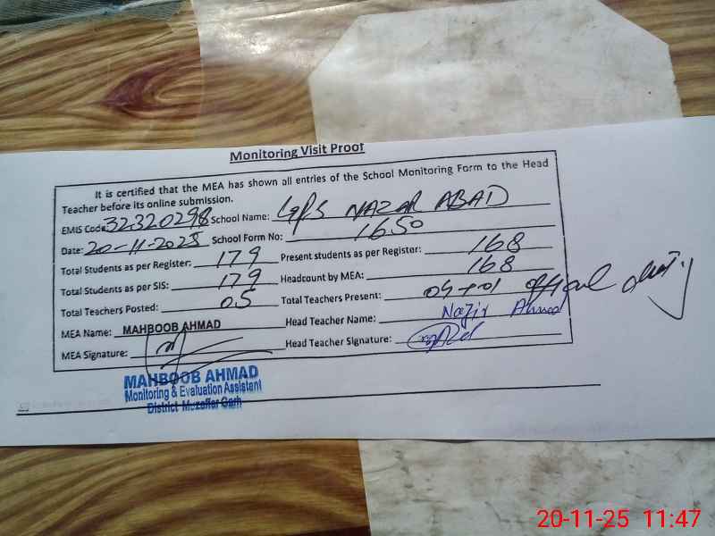 | EMIS Code: 32320298 | Name of School: GPS NAZAR ABAD | |||