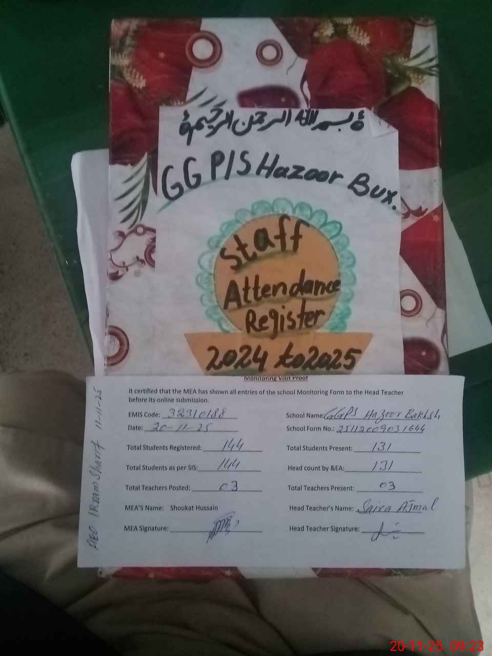 | EMIS Code: 32310188 | Name of School: GGPS HAZOOR BAKHSH | |||