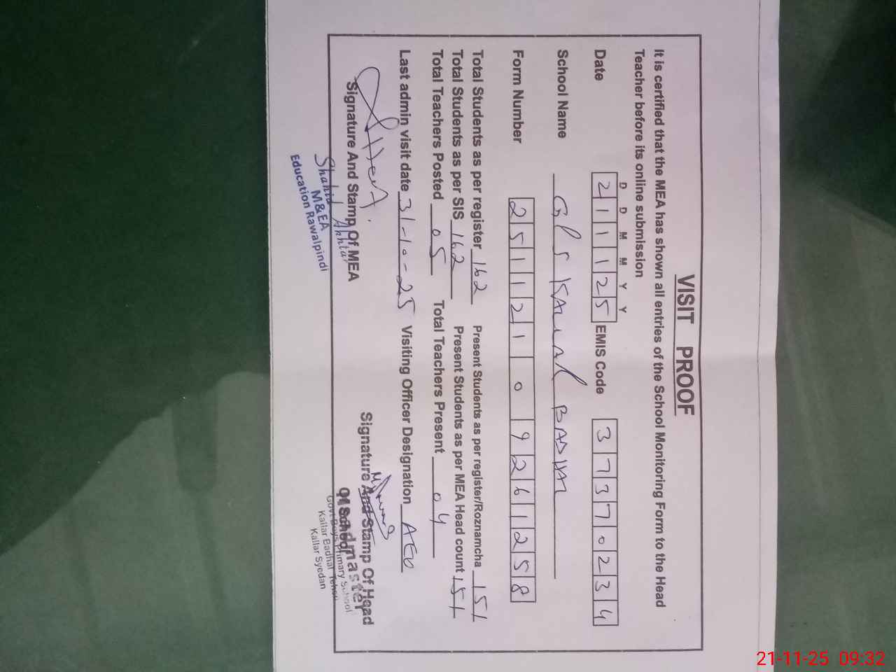 | EMIS Code: 37370234 | Name of School: GPS KALLAR BADHAL | |||