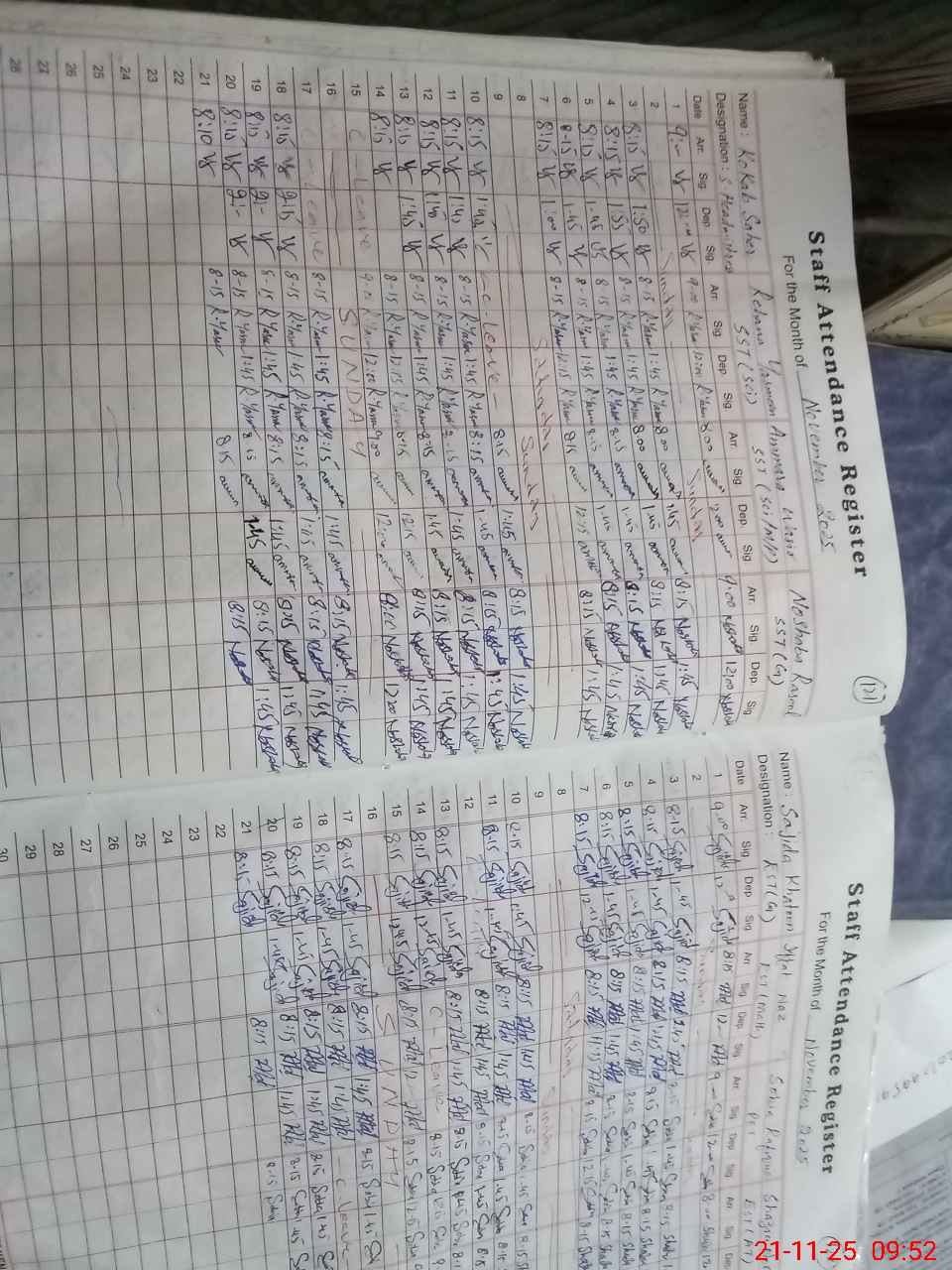 | CNIC | Full Name | Designation | R/C | Absence During Last Calender Month |
