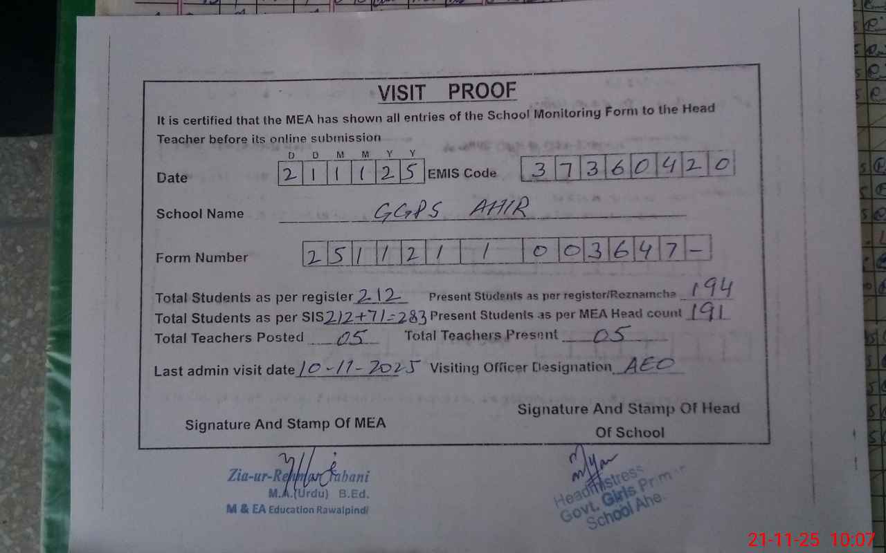 | EMIS Code: 37360420 | Name of School: GGPS AHIR | |||