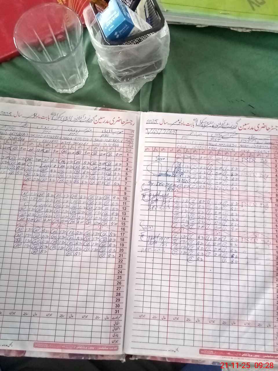 | CNIC | Full Name | Designation | R/C | Absence During Last Calender Month |