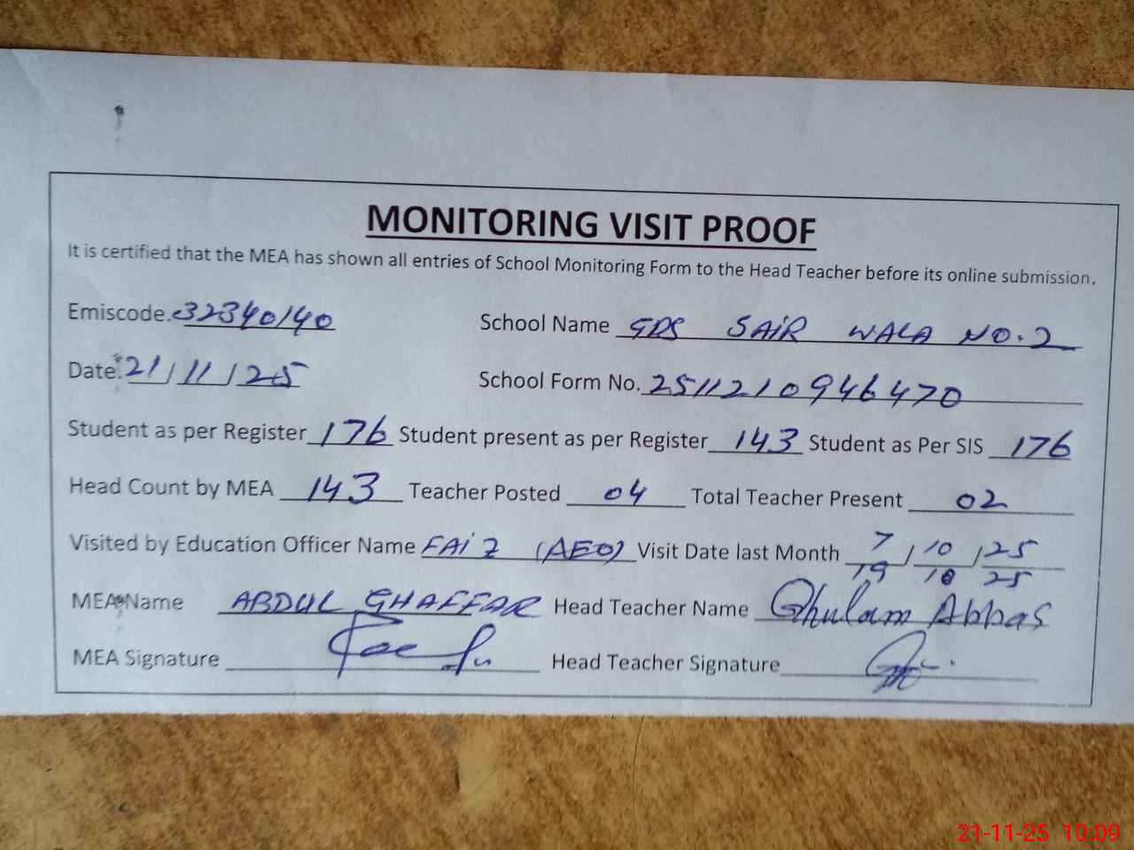 | EMIS Code: 32340140 | Name of School: GPS SAIR WALA NO. 2 | |||