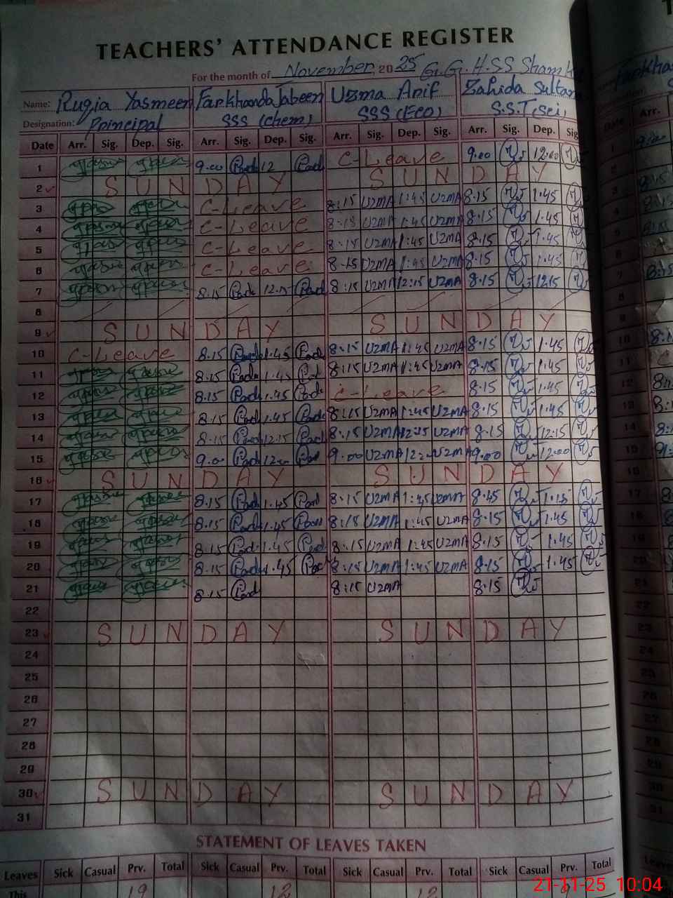 | CNIC | Full Name | Designation | R/C | Absence During Last Calender Month |