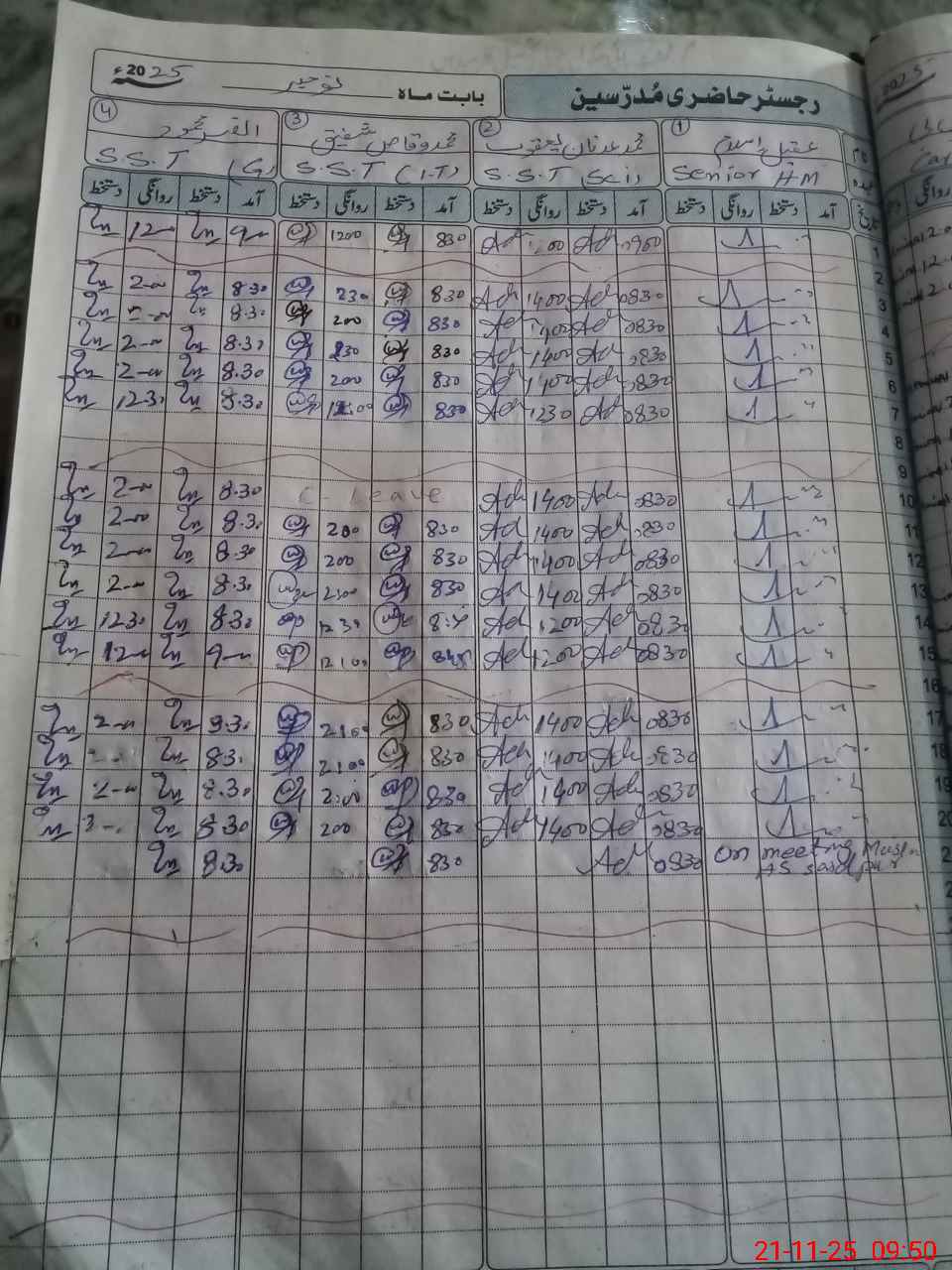 | CNIC | Full Name | Designation | R/C | Absence During Last Calender Month |
