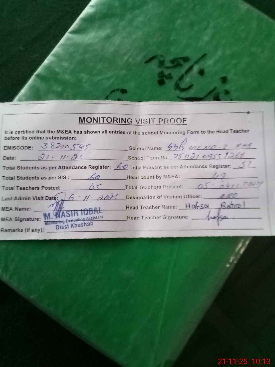 | EMIS Code: 38210545 | Name of School: GGPS MC NO.2 KHUSHAB | |||