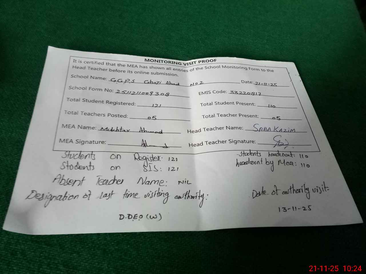 | EMIS Code: 33220817 | Name of School: GGPS GHAZI ABAD NO. 2 | |||