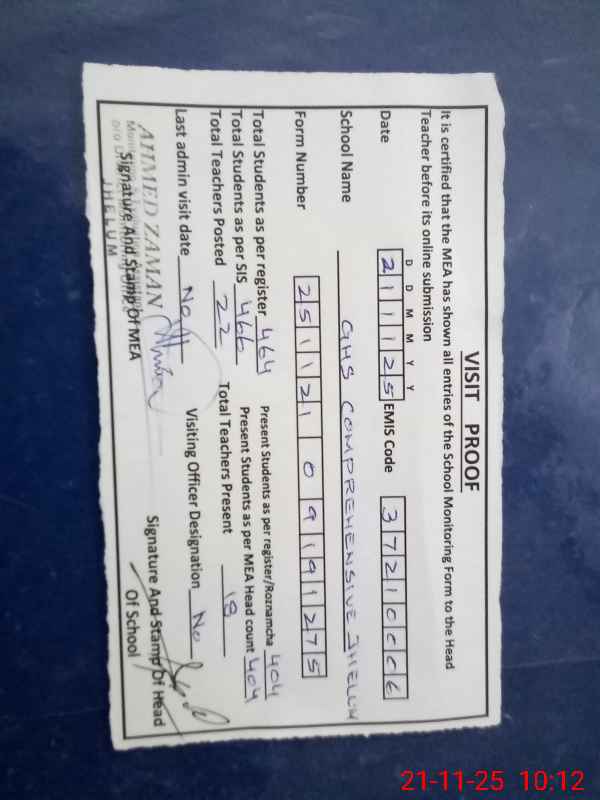 | EMIS Code: 37210006 | Name of School: GHS COMPREHENSIVE JHELUM | |||