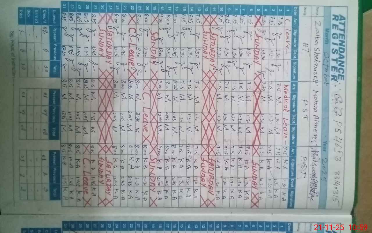 | Name: Ze**** Sh**** Designation: (School Headmaster's/Headmistress's) PST Phone/Cell Number: 03**** |