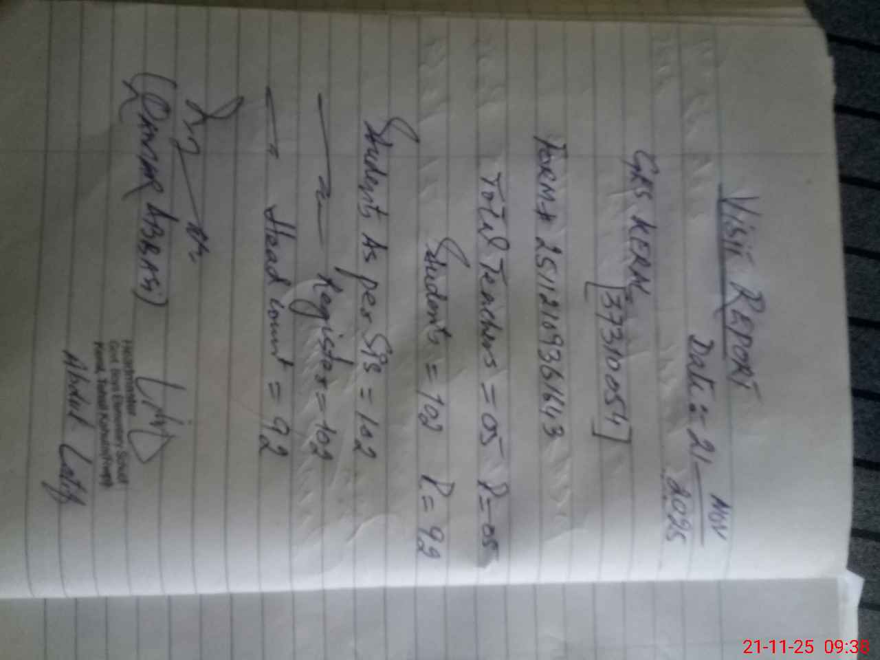 | Attendance Register | Head Teacher | MEA with School | Visit Proof |