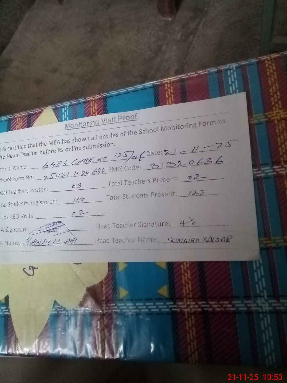 | EMIS Code: 31320636 | Name of School: GGES CHAK 125/NP QADEEM | |||