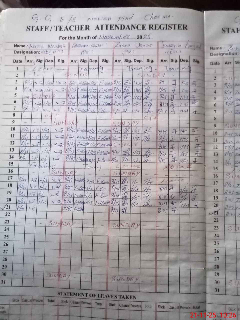 | Leave | Duty | Absent | Maternity | Medical | Ex- Pak |