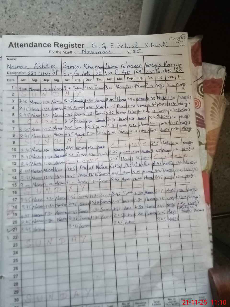 | Name: Na**** Ak**** Designation: (School Headmaster's/Headmistress's) SST Phone/Cell Number: 03**** |