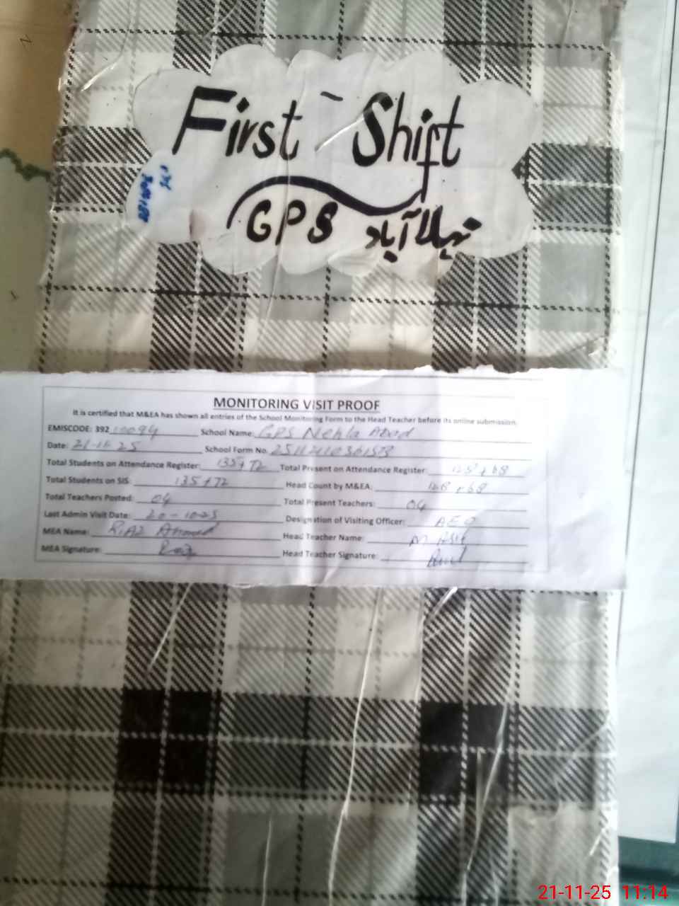 | Attendance Register | Head Teacher | MEA with School | Visit Proof |