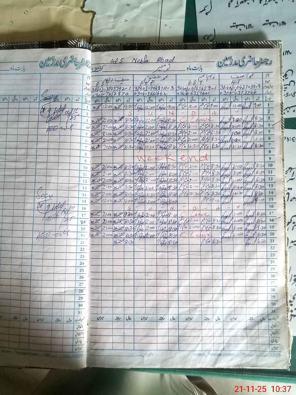 | CNIC | Full Name | Designation | R/C | Absence During Last Calender Month |
