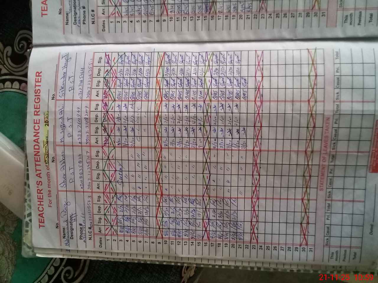 | CNIC | Full Name | Designation | R/C | Absence During Last Calender Month |