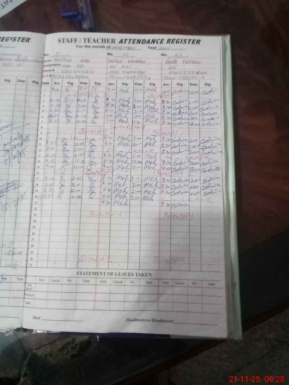 | Name: SA**** NA**** Designation: (School Headmaster's/Headmistress's) Head Mistress Phone/Cell Number: 03**** |