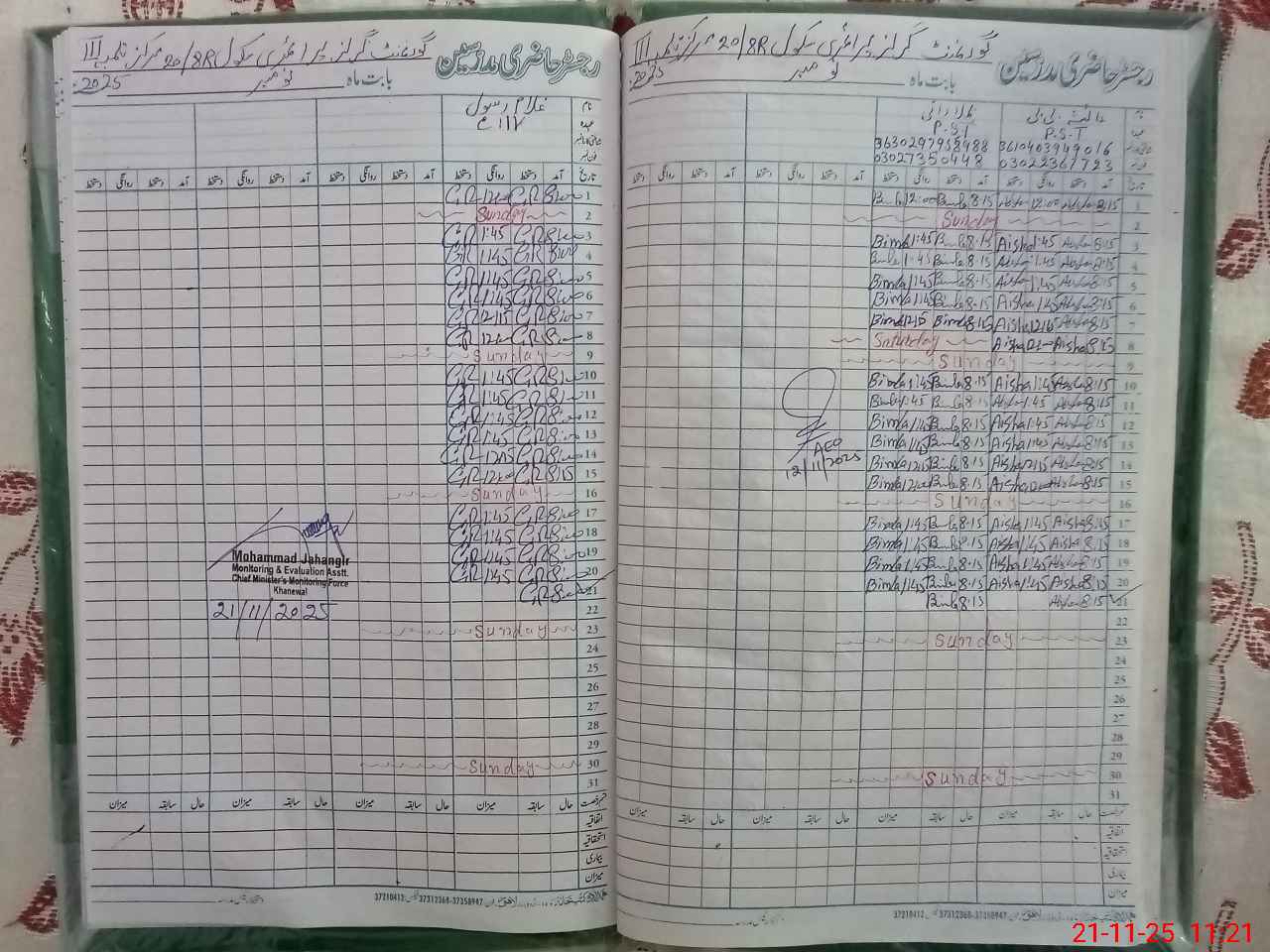 | District: KHANEWAL | Tehsil: MIAN CHANNU | Markaz: TULAMBA-III - FEMALE | Level: Primary | |