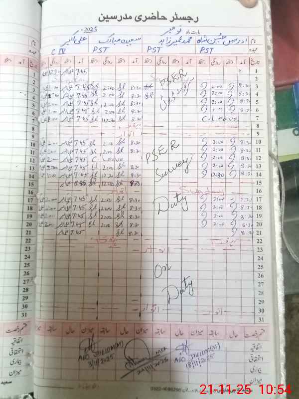 | CNIC | Full Name | Designation | R/C | Absence During Last Calender Month |