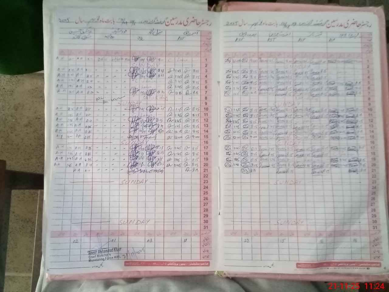 | CNIC | Full Name | Designation | R/C | Absence During Last Calender Month |