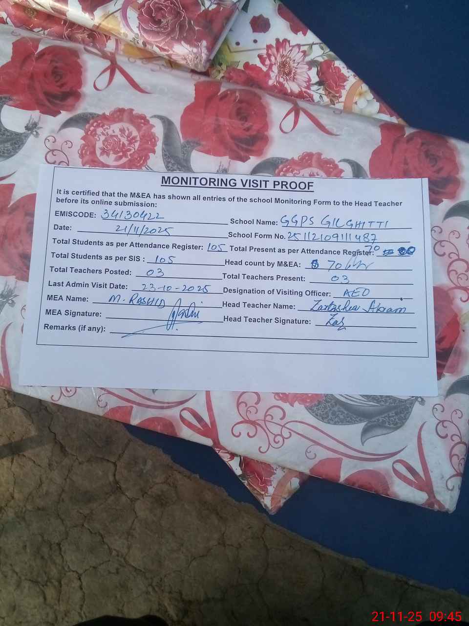 | EMIS Code: 34130422 | Name of School: GGPS GILGHITTI | |||
